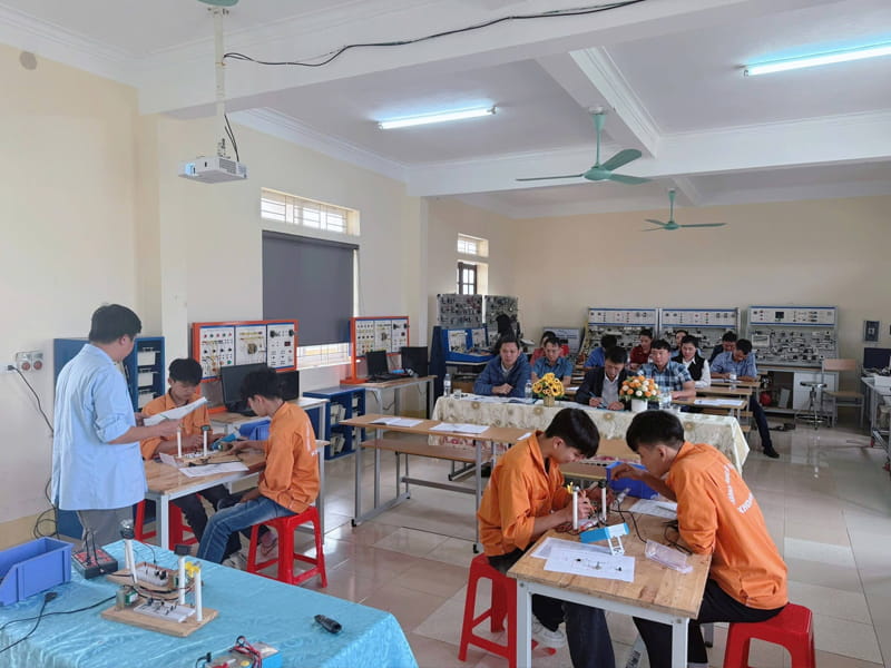 Trong số các lựa chọn, Trường Trung Cấp Kinh Tế – Kỹ Thuật Bắc Nghệ An nổi bật với định hướng đào tạo gắn liền thực tế sản xuất. Thay vì dàn trải kiến thức, chương trình tập trung vào các kỹ năng cốt lõi mà doanh nghiệp đang tìm kiếm, cụ thể là lắp đặt hệ thống điện, lập trình PLC và vận hành thiết bị tự động.